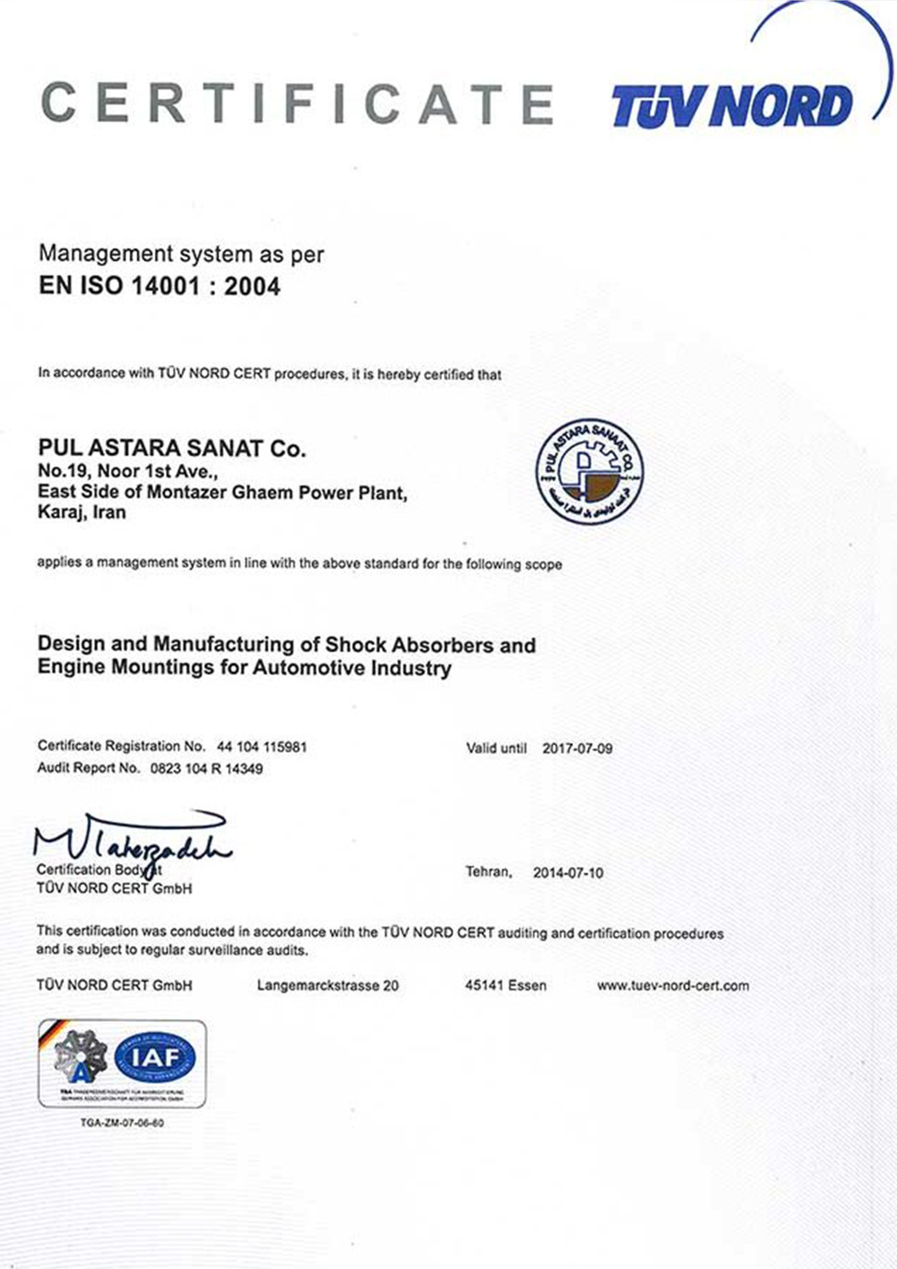 - اخذ استاندارد ISO 14001:2004 از شرکت NORD TÜV آلمان